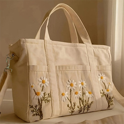 กระเป๋าโท้ทผ้าใบสำหรับผู้หญิง,กระเป๋าพิมพ์ลายดอกเดซี่ตามสั่ง